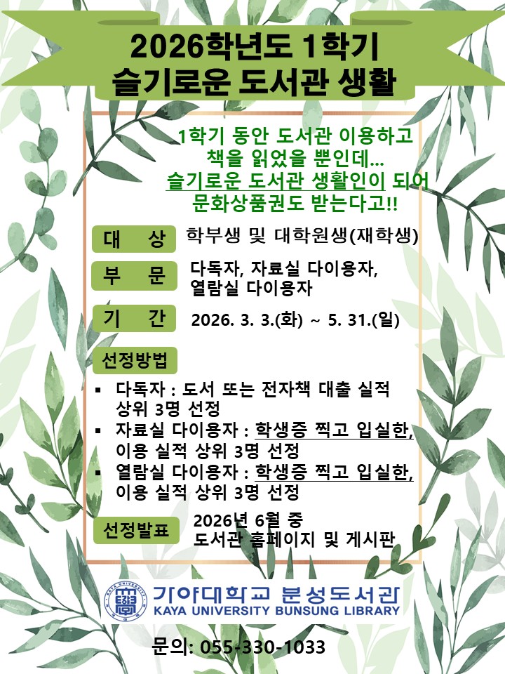 2026학년도 1학기 도서관 슬기로운 생활 시행 안내
