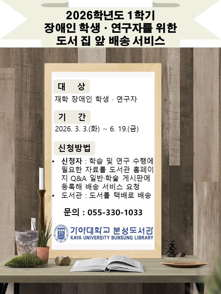 2026학년도 1학기 장애인 학생·연구자를 위한 도서 집 앞 배송 서비스 시행 안내